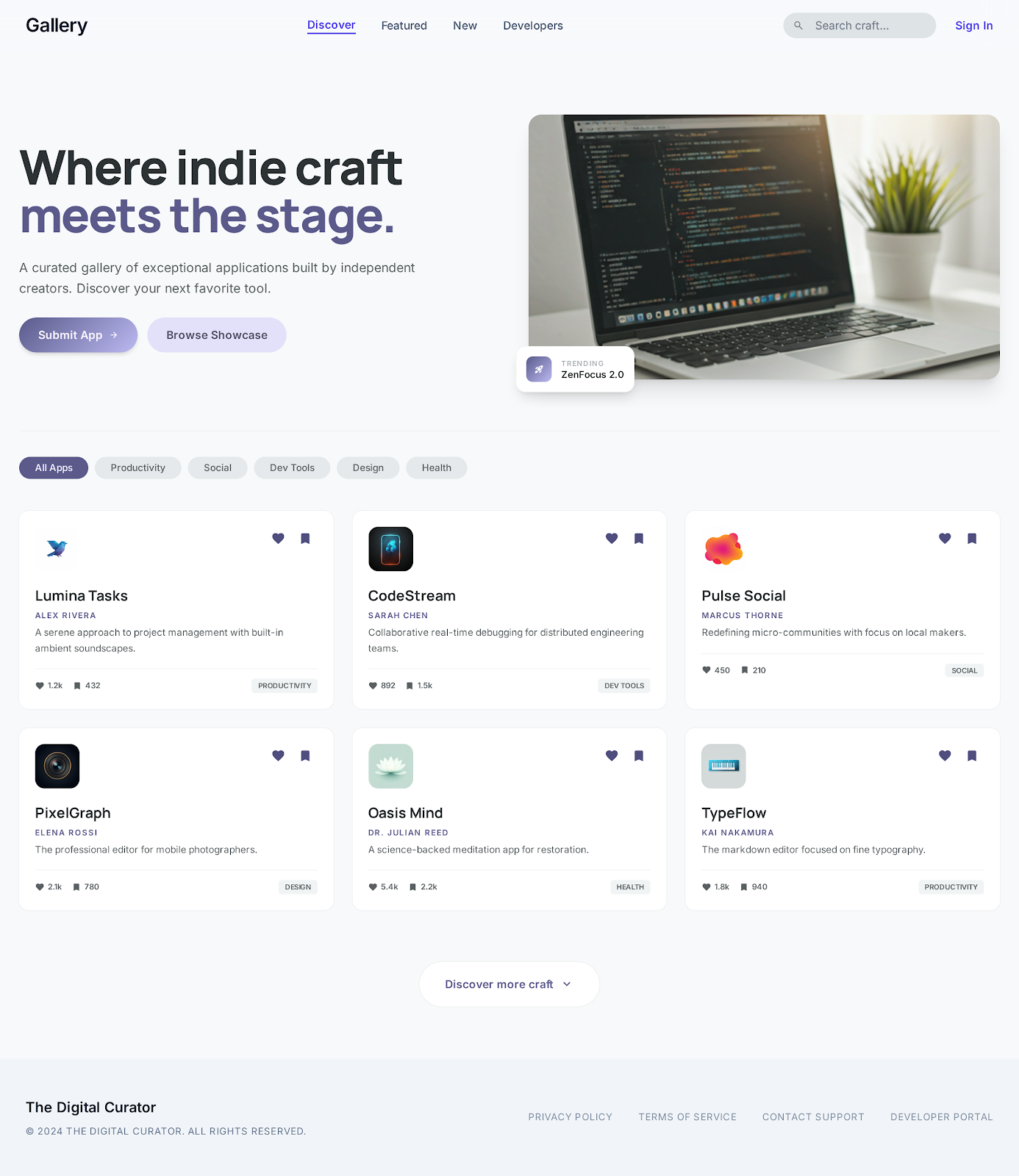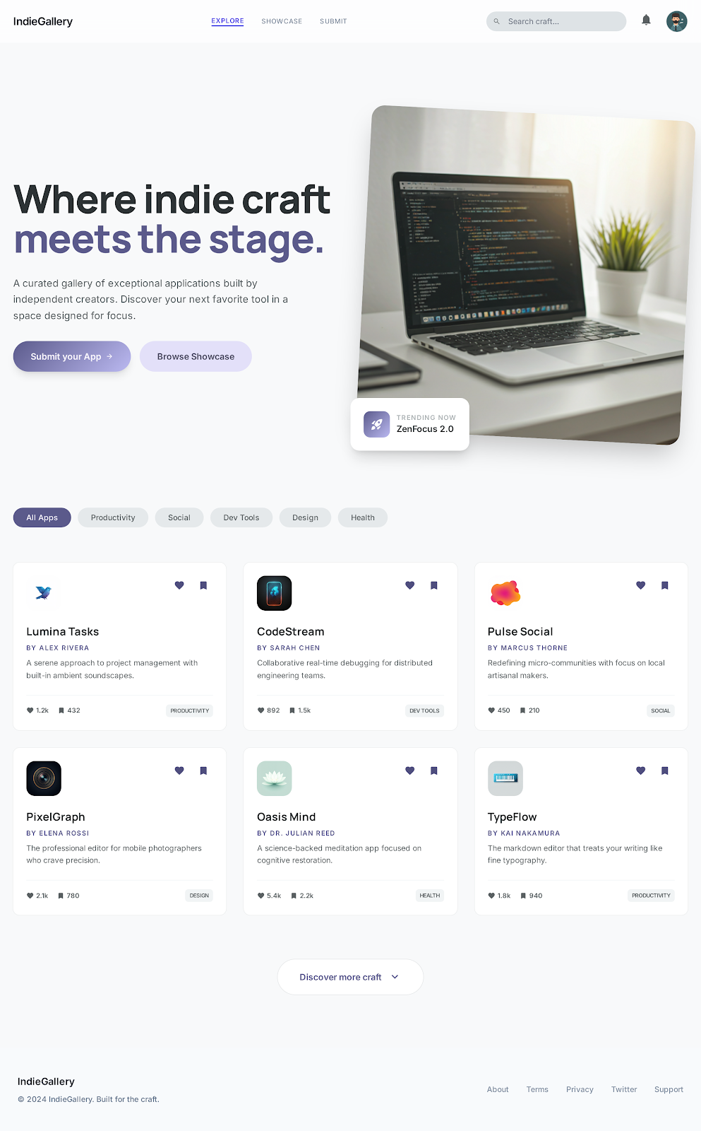 アプリがカード形式で並んでいて、いいねとかブックマークができる感じ。
