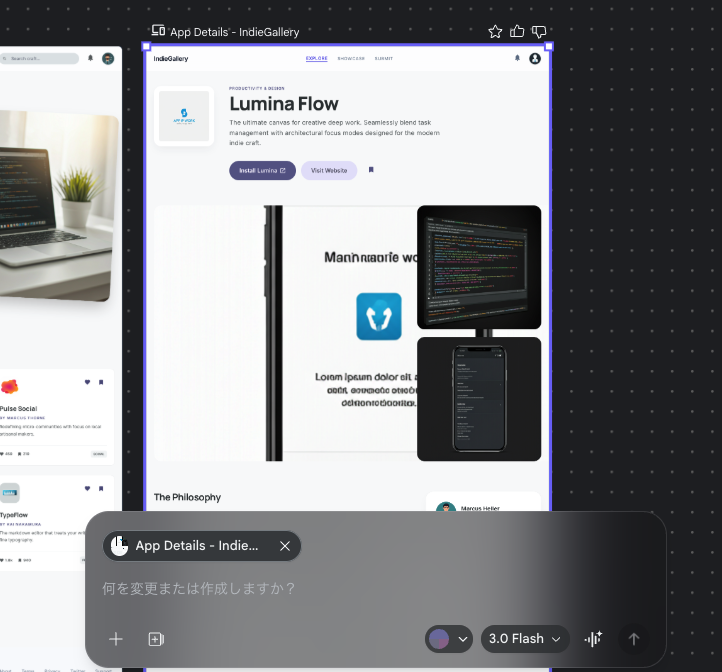 「こんなアプリ作って」と入力したら画面デザインが出てきた。Google Stitchを使って個人開発者がUIを作れるか検証