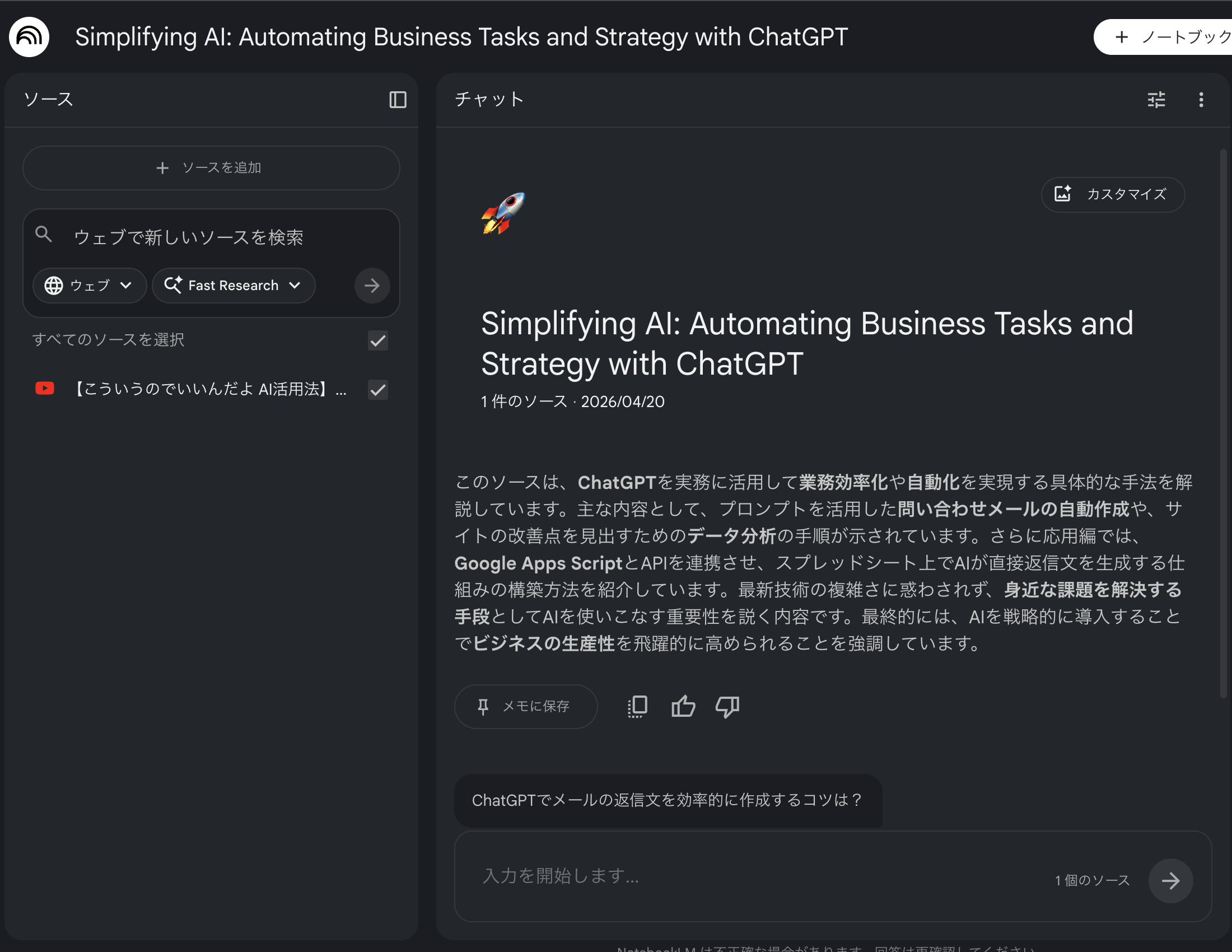 詊ãã«AI掻çšã«ã€ããŠè§£èª¬ããŠãåç»ã®URLããNotebookLMã«è²Œã£ãŠã¿ãã
