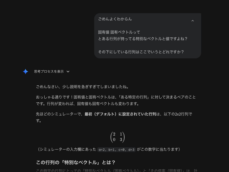 Gemini が教えてくれますがこれが固有ベクトルなわけです。
